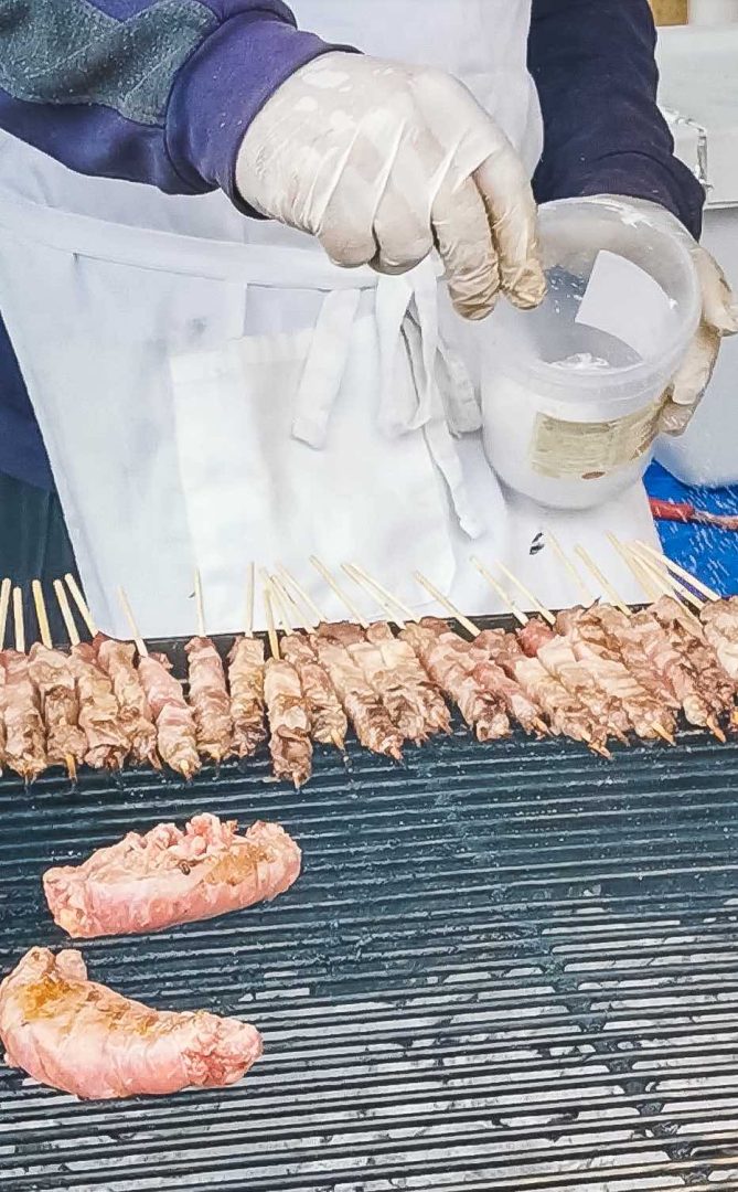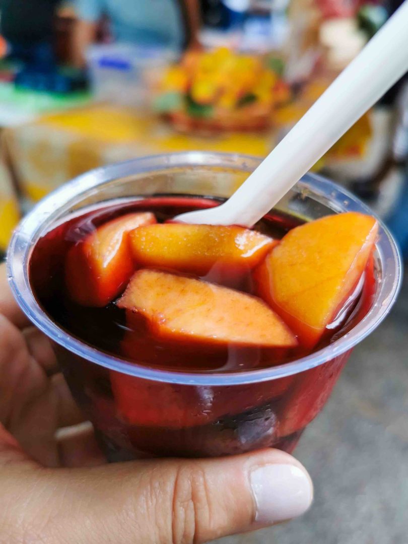 There are food stalls and live music at the back of the station, where I grab a sandwich with cured meat and pecorino cheese followed by a glass of chilled peaches soaked in red wine (aka the “drunken peaches”) to fuel up before setting off to visit the historic center.