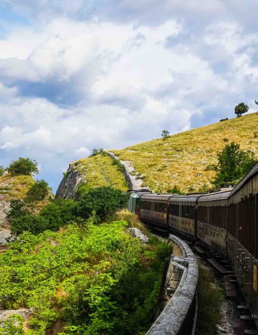 The train travels along a path of 128 km that was once part of the national railway network and today is one of Italy’s most surprising attractions.